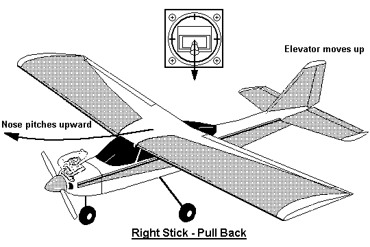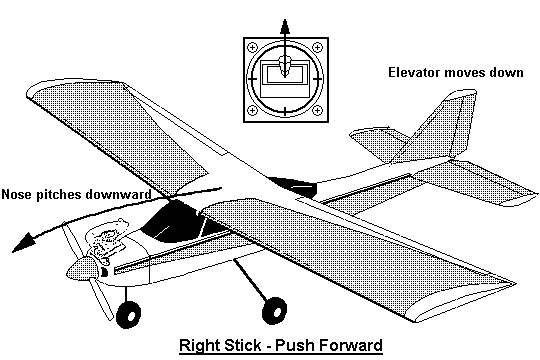 the controls are backwards. To make the model go to the flyer's