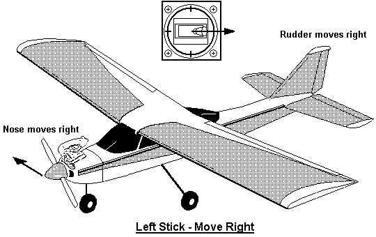 When the rudder is moved to the right, the aircraft