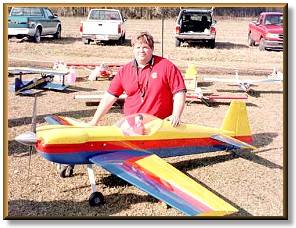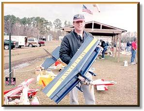 Spalding's flying impressed us all at this year's Fun Fly. His Cap 232 is only one of a fleet of aircraft he has constructed. The Cap 232 is powered by a 4 stroke 91 engine and utilizes J.R. radio equipment. Spalding is a member of the Crystal Coast Flying Club. |